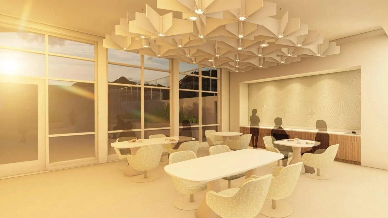 The design prioritizes safety for both patients and staff while maintaining a calm, therapeutic atmosphere enriched with positive distractions. Every element of the environment is thoughtfully considered to balance security, comfort, and dignity, ensuring a space that fosters healing and well‑being.